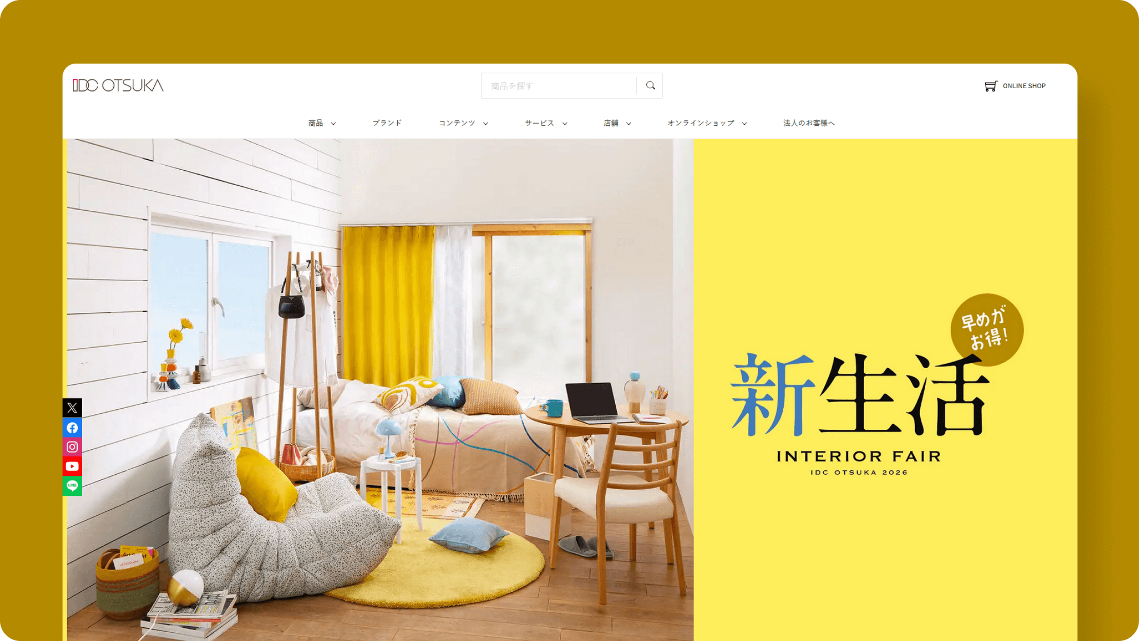 As one of Japan’s leading names in high-end furniture and interior design, IDC Otsuka sought to translate the refined experience of its physical showrooms into a digital environment. Following its integration into the Yamada Denki Group, the brand required a modernized online presence capable of supporting a broader retail ecosystem while preserving its luxury positioning.